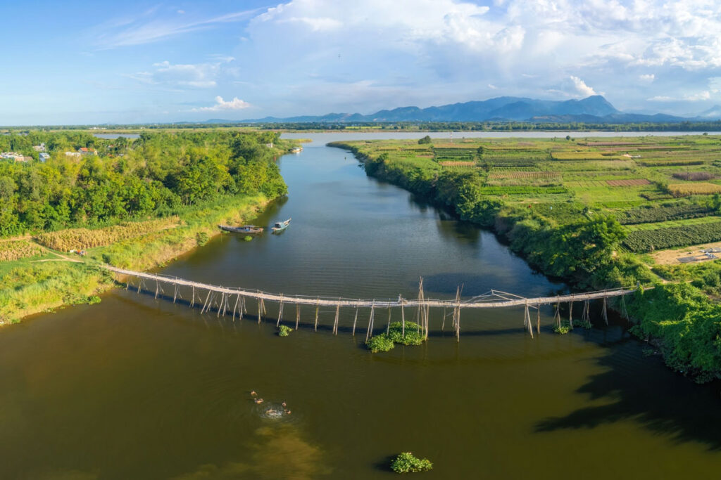 Located about 12 km from Hoi An, it also makes for a nice stop if you’re heading to My Son. You get off the main roads and discover a simple place used daily by locals. There’s no staging here. The bridge is used to reach the fields on the other side of the river. That raw and authentic side is exactly what makes this place interesting.